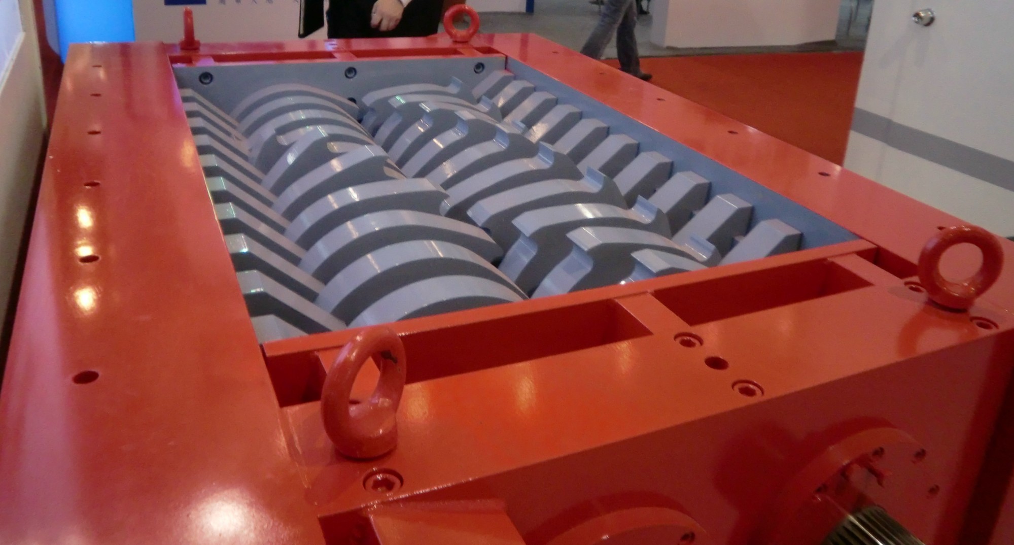 剪切式破碎機(jī) 此設(shè)備為對(duì)輥剪切式破碎機(jī),可根據(jù)用戶的需要設(shè)置不同的剪切粒徑,粒徑范圍:10-200mm,此設(shè)備適用于生活垃圾處理,工業(yè)垃圾處理,大件垃圾處理,園林垃圾處理等。